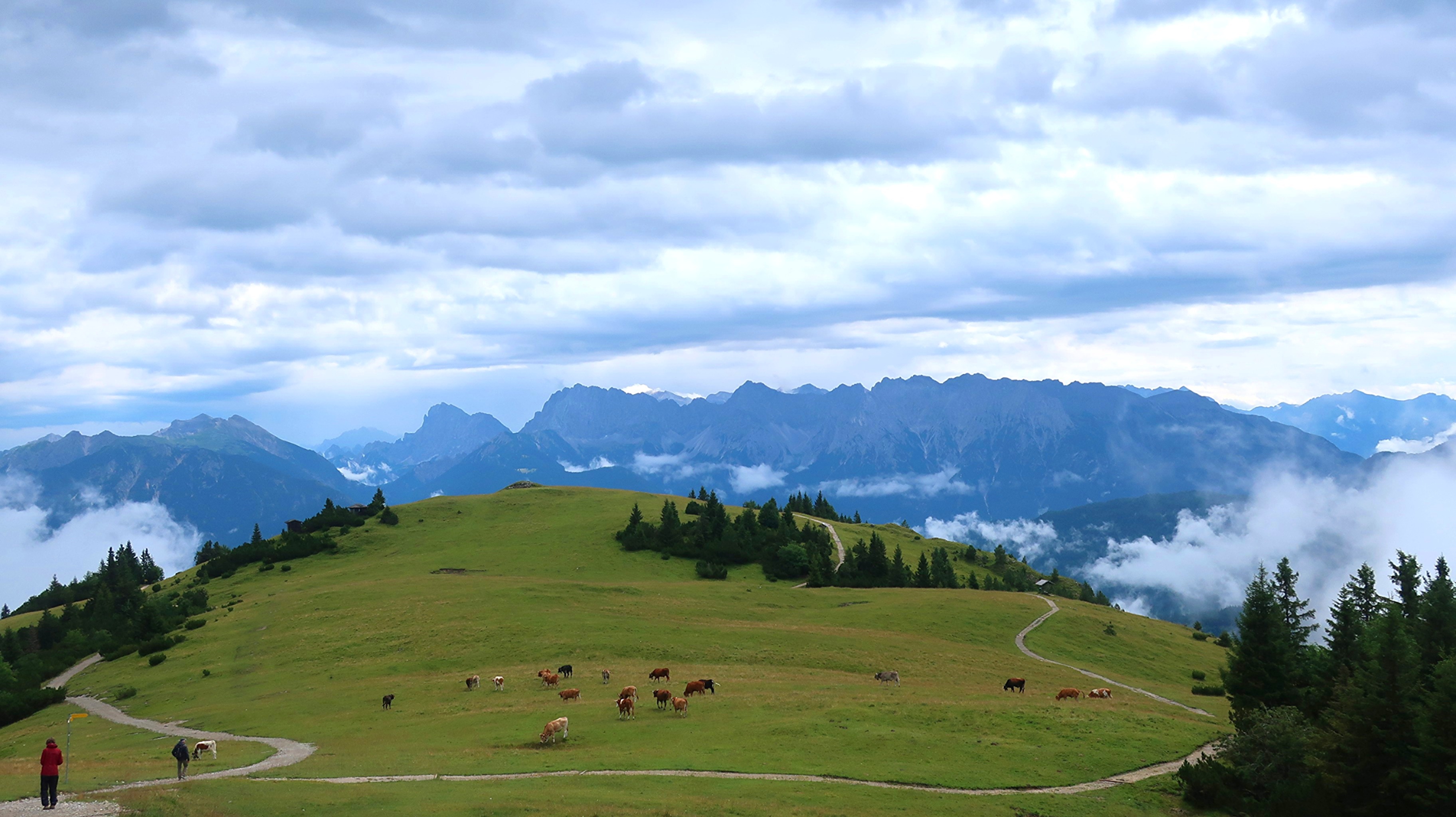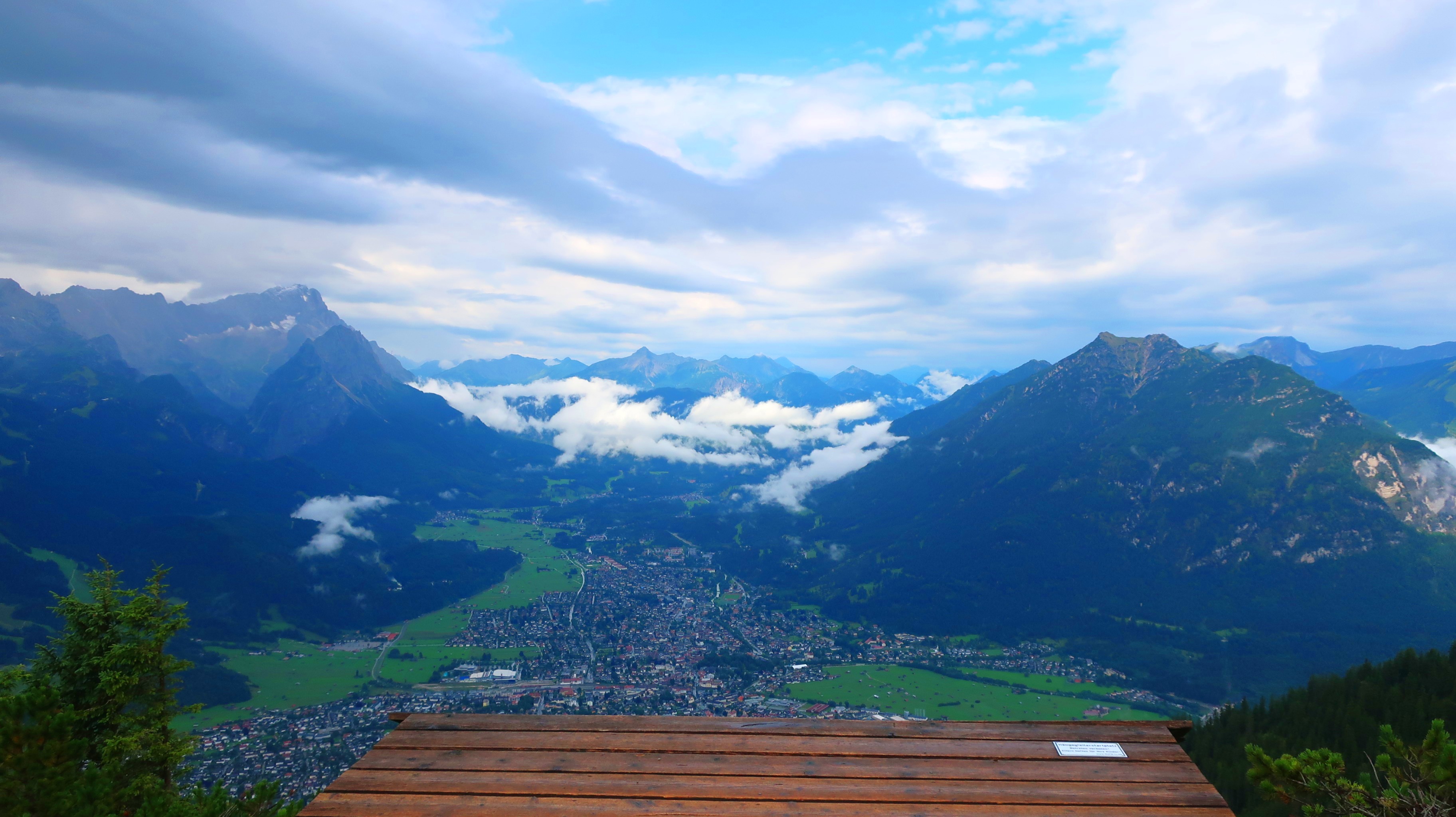 Med Wankbahn svävar vi långsamt upp över trädtopparna, och varje meter öppnar upp en allt mäktigare vy över dalen och de omgivande alptopparna. På toppen av Mount Wank breder en 360-graders panoramautsikt ut sig – vi ser Zugspitze i all sin prakt, Wetterstein